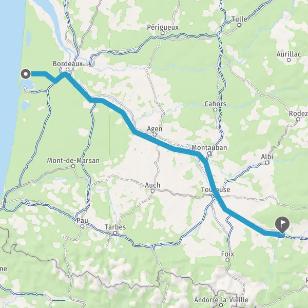Prendre à gauche et rejoindre A62 E72. Continuer sur 224 kilomètres