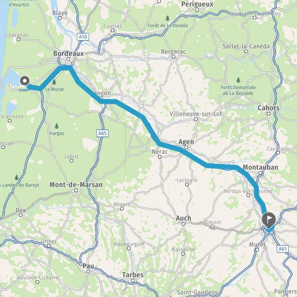 Prendre à gauche et rejoindre A62 E72. Continuer sur 224 kilomètres