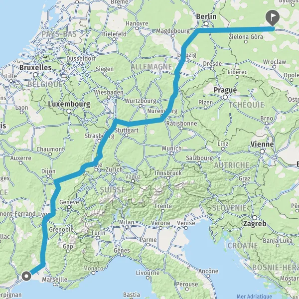 Prendre à droite et rejoindre A36 E60. Continuer sur 196 kilomètres