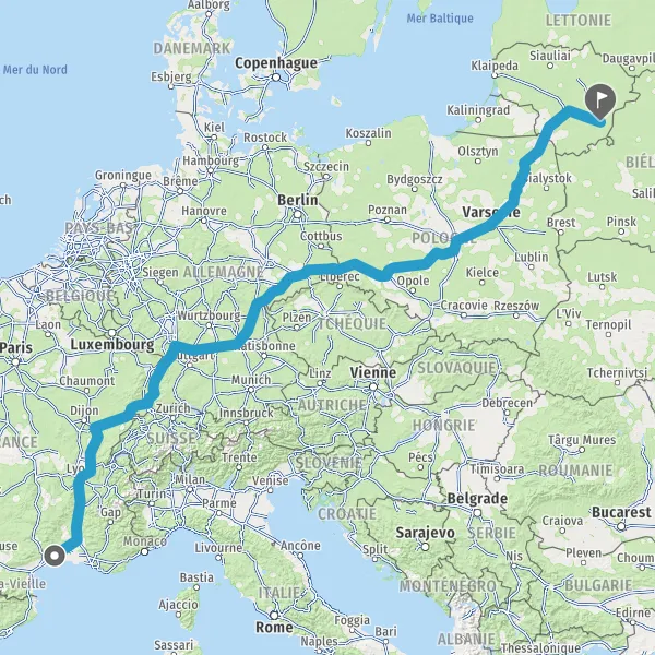 Prendre à droite et rejoindre A36 E60. Continuer sur 196 kilomètres