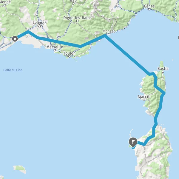 Prendre à droite et rejoindre T10 (Route de Bonifacio). Continuer sur 15 kilomètres