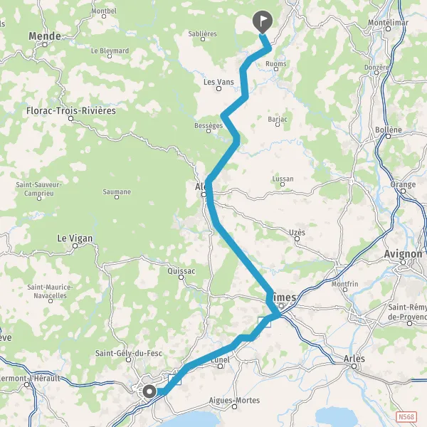 Au rond-point, prendre la 1ère sortie sur D904 (Route de Saint-Ambroix) et continuer sur 8,2 kilomètres