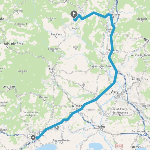 Au rond-point, prendre la 1ère sortie sur N102 (Route d'Aubenas) et continuer sur 8,3 kilomètres