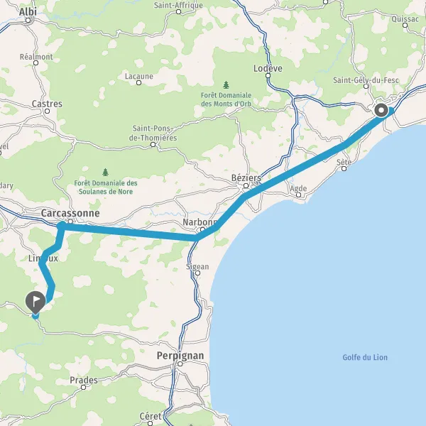 Au rond-point, prendre la 2ème sortie sur D118 (Route de Limoux) et continuer sur 9,6 kilomètres