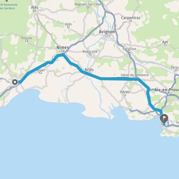 Avec le mode voiture, vous pouvez configurer vos options (type de véhicule, autoroute ou non, péage ou non, distance la plus courte), tout en ayant accès aux infos de circulation grâce à notre service d'info-trafic en temps réel. Ainsi faites des économies sur le coût ou la durée de votre voyage, en trouvant le trajet Montpellier 1er Arrondissement, Marseille adapté à vos besoins.