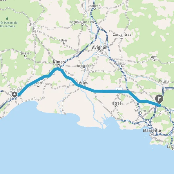 Avec le mode voiture, vous pouvez configurer vos options (type de véhicule, autoroute ou non, péage ou non, distance la plus courte), tout en ayant accès aux infos de circulation grâce à notre service d'info-trafic en temps réel. Ainsi faites des économies sur le coût ou la durée de votre voyage, en trouvant le trajet Montpellier Aix-en-Provence adapté à vos besoins.