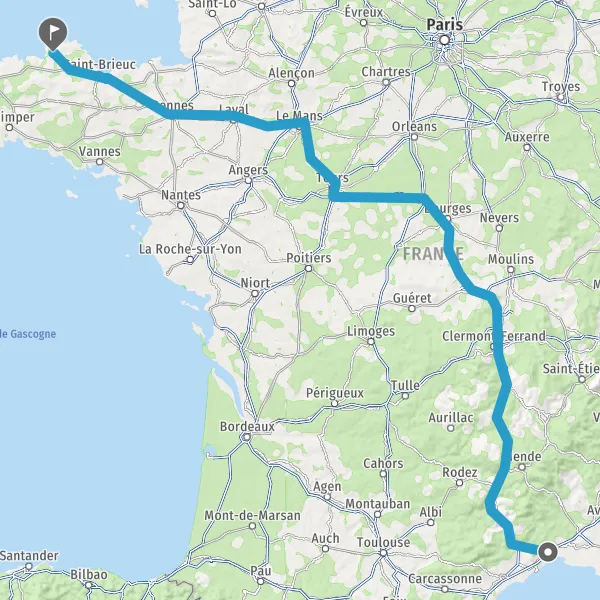 Prendre à droite et rejoindre A85 E604. Continuer sur 105 kilomètres