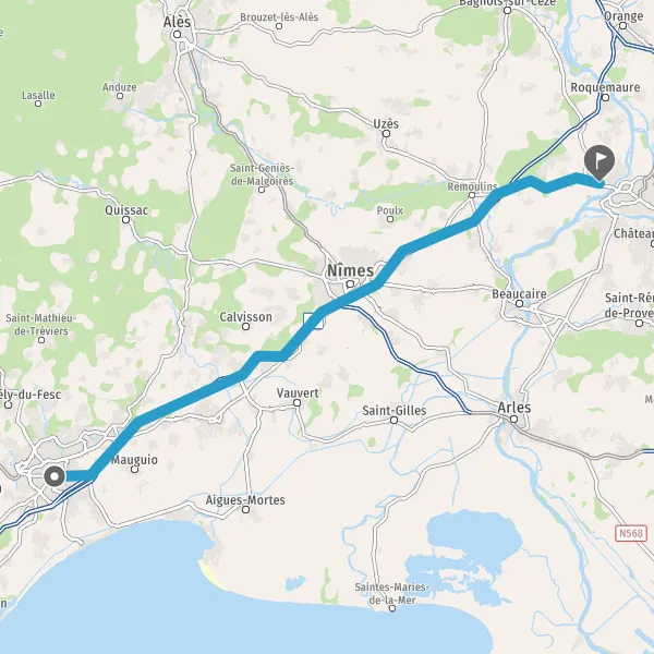 Au rond-point, prendre la 2ème sortie sur N100 (Route de Nîmes) et continuer sur 1 kilomètre