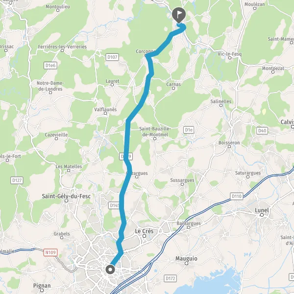 Au rond-point, prendre la 1ère sortie sur D109 (Avenue de Sainte-Croix-de-Quintillargues) et continuer sur 1,6 kilomètre