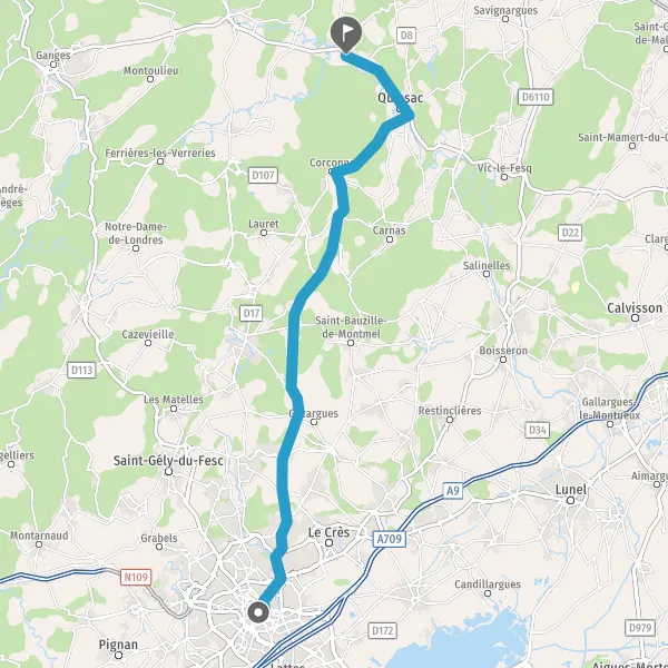 Au rond-point, prendre la 1ère sortie sur D109 (Avenue de Sainte-Croix-de-Quintillargues) et continuer sur 1,6 kilomètre
