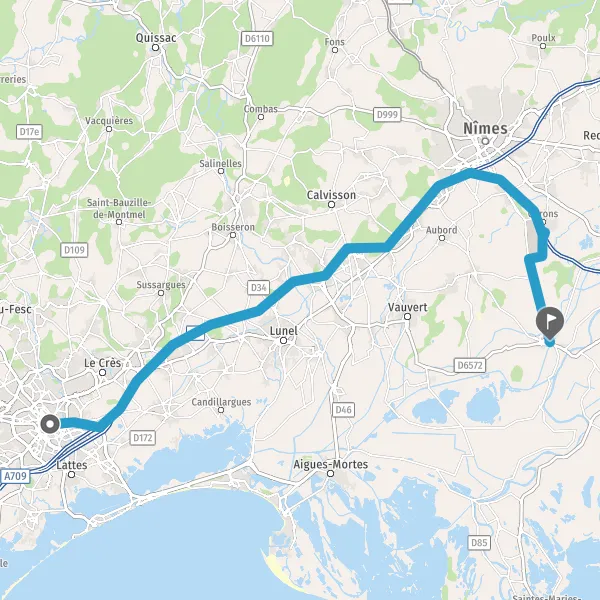 Au rond-point, prendre la 1ère sortie sur D5e2 (Avenue des Costières) et continuer sur 800 mètres