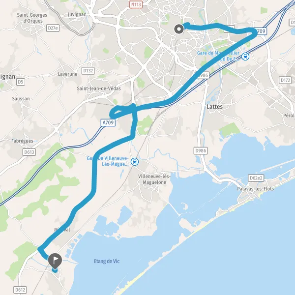 Au rond-point, prendre la 3ème sortie sur D612 (Route de Sète) et continuer sur 2,9 kilomètres