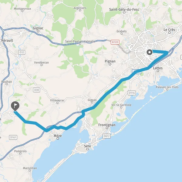 Au rond-point, prendre la 2ème sortie sur D613 (Route de Pézenas) et continuer sur 8,1 kilomètres