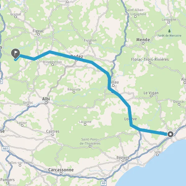 Tourner légèrement à droite sur D1 (Avenue du Rouergue) et continuer sur 2,7 kilomètres