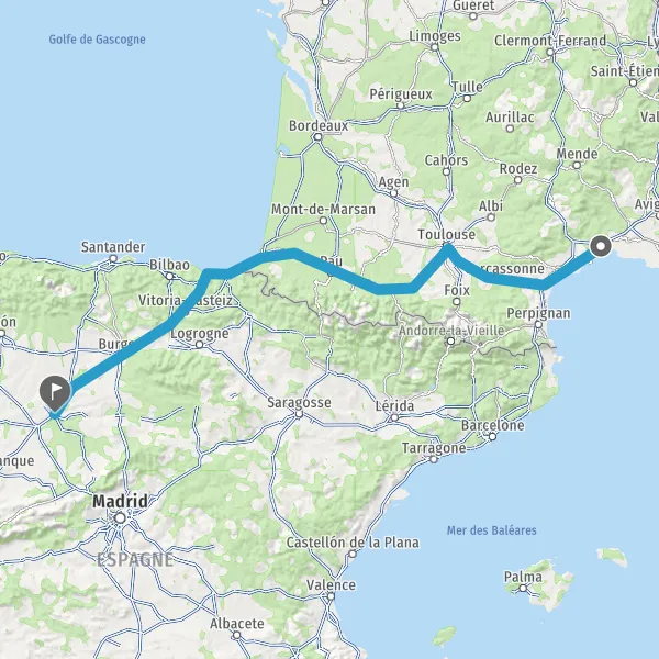 Payer 1,80 € (Péage Muret) Prendre un ticket (Péage Lestelle) Payer 22,40 € (Péage Sames) 247 km