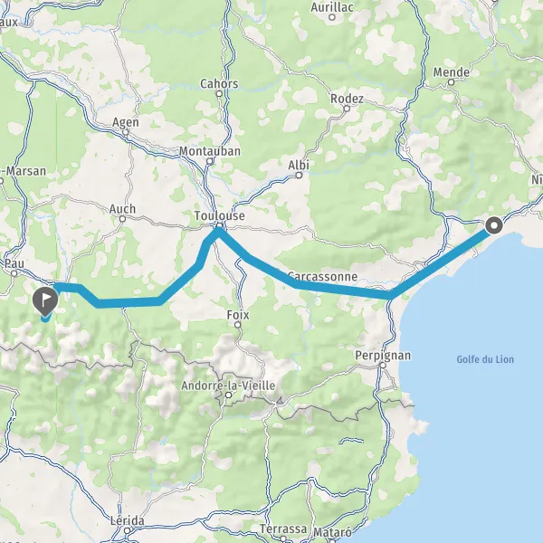 Prendre à droite et rejoindre A64 E80. Continuer sur 115 kilomètres