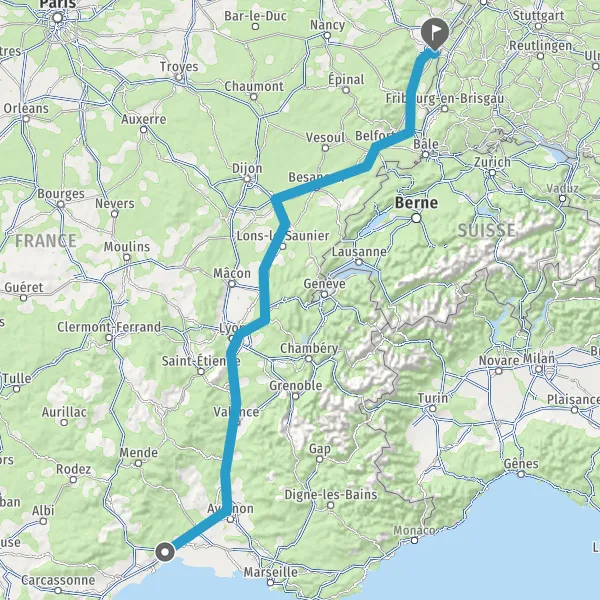 Prendre à droite et rejoindre A36 E60. Continuer sur 125 kilomètres