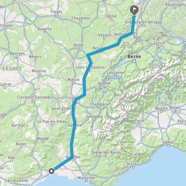 Prendre à droite et rejoindre A36 E60. Continuer sur 185 kilomètres