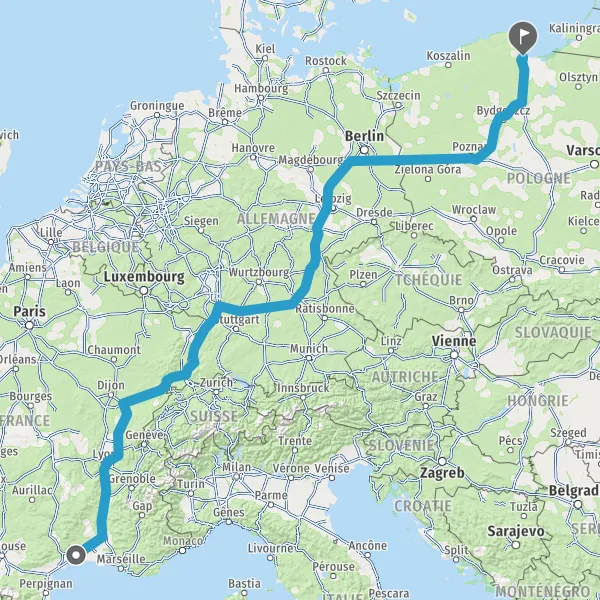Prendre à droite et rejoindre A36 E60. Continuer sur 125 kilomètres