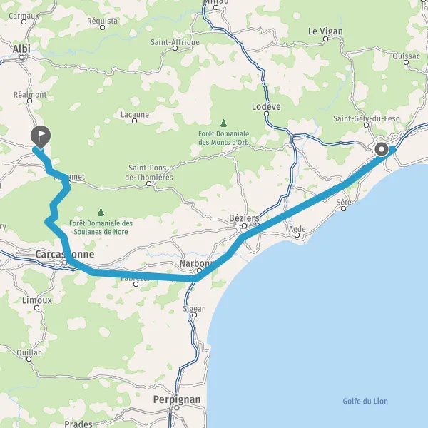 Au rond-point, prendre la 2ème sortie sur D118 (Avenue de la Montagne Noire) et continuer sur 36 kilomètres