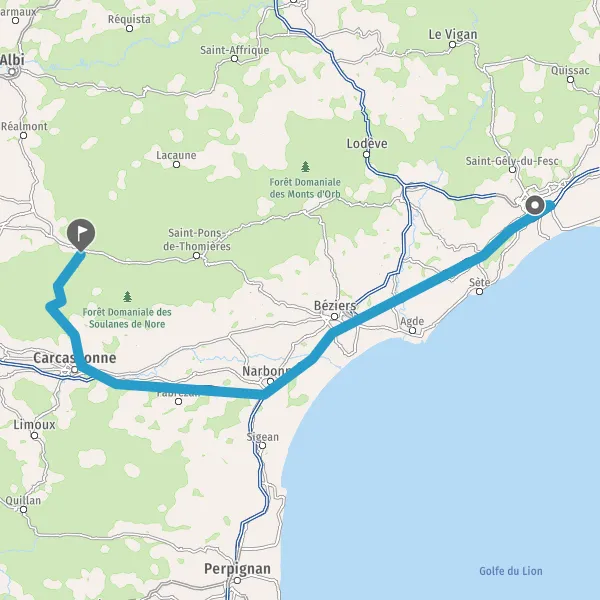 Au rond-point, prendre la 2ème sortie sur D118 (Avenue de la Montagne Noire) et continuer sur 36 kilomètres