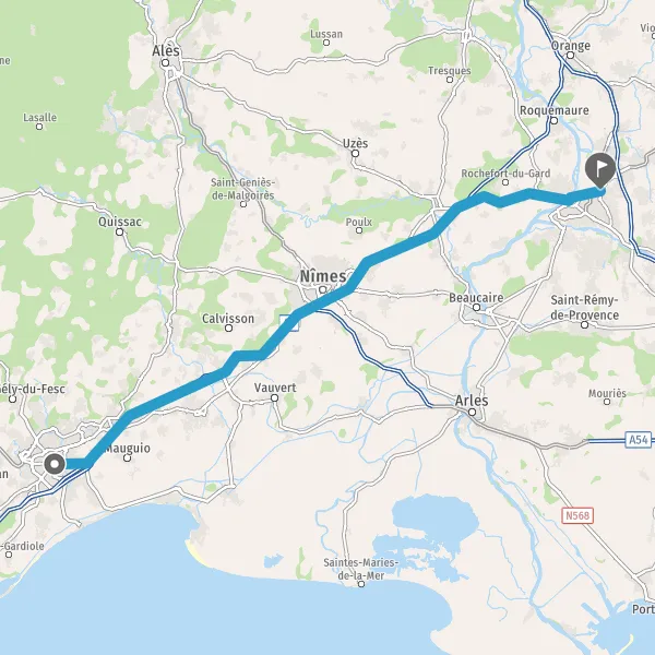 Au rond-point, prendre la 2ème sortie sur N100 (Route de Nîmes) et continuer sur 1 kilomètre