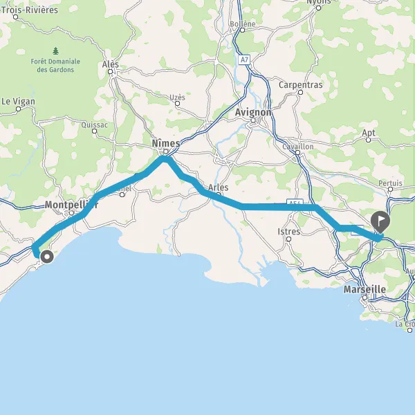 Avec le mode voiture, vous pouvez configurer vos options (type de véhicule, autoroute ou non, péage ou non, distance la plus courte), tout en ayant accès aux infos de circulation grâce à notre service d'info-trafic en temps réel. Ainsi faites des économies sur le coût ou la durée de votre voyage, en trouvant le trajet Frontignan Aix-en-Provence adapté à vos besoins.