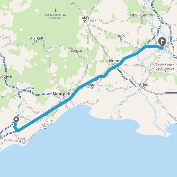 Au rond-point, prendre la 2ème sortie sur N100 (Route de Nîmes) et continuer sur 1 kilomètre