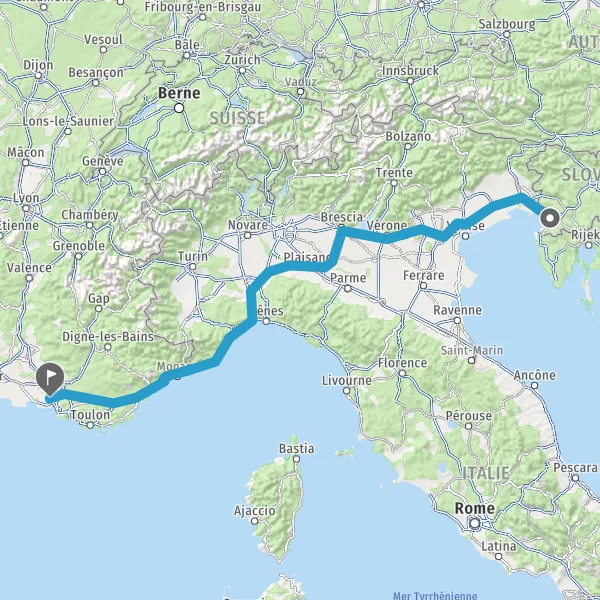 Continuer E70 (Passante di Mestre) sur 154 kilomètres