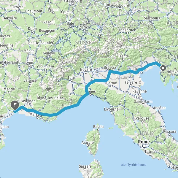 Payer 3,40 € (Péage La Turbie Pleine Voie) Payer 1,50 € (Péage Saint Isidore Pleine Voie) Payer 3,50 € (Péage Antibes Pleine Voie nord) Prendre un ticket (Péage Capitou) Payer 17,70 € (Péage La Barque) 688 km