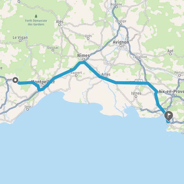 Avec le mode voiture, vous pouvez configurer vos options (type de véhicule, autoroute ou non, péage ou non, distance la plus courte), tout en ayant accès aux infos de circulation grâce à notre service d'info-trafic en temps réel. Ainsi faites des économies sur le coût ou la durée de votre voyage, en trouvant le trajet Gignac Marseille adapté à vos besoins.