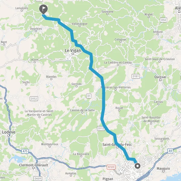 Au rond-point, prendre la 2ème sortie sur D999 (Avenue du Vigan) et continuer sur 12 kilomètres