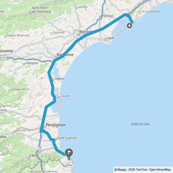 Prendre à gauche et rejoindre A9. Continuer sur 131 kilomètres