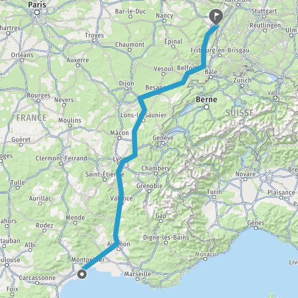 Prendre à droite et rejoindre A36 E60. Continuer sur 185 kilomètres