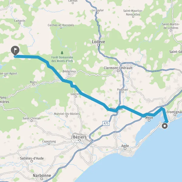 Au rond-point, prendre la 1ère sortie sur D613 (Route de Pézenas) et continuer sur 8 kilomètres