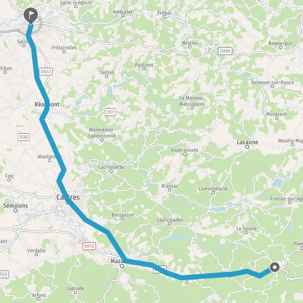 Au rond-point, prendre la 1ère sortie sur D612 (Route d'Albi) et continuer sur 11 kilomètres