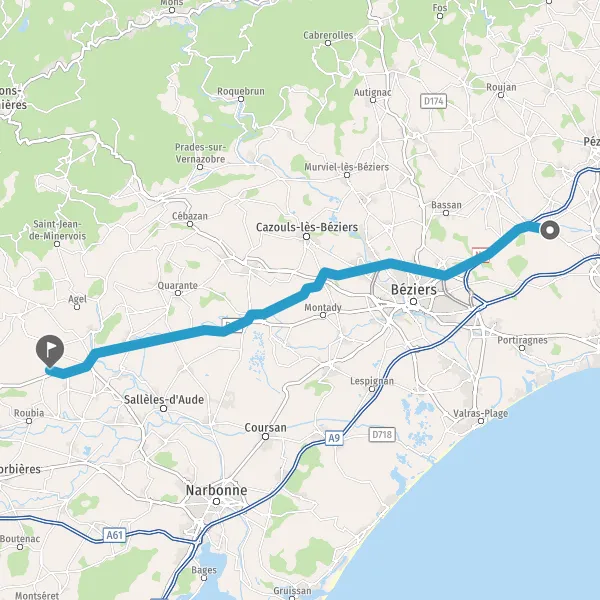 Tourner à droite sur D18 (Avenue de Béziers) et continuer sur 2,6 kilomètres