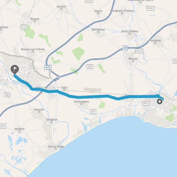 Tourner légèrement à droite sur D912 (Avenue de Béziers) et continuer sur 75 mètres