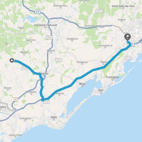 Continuer D13 D30 (Avenue de Pézenas) sur 750 mètres