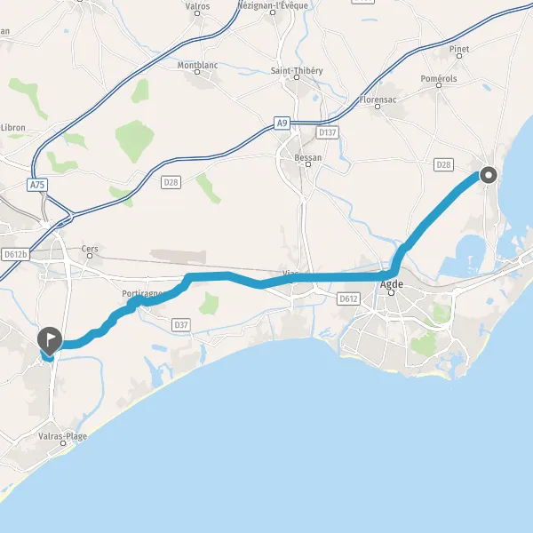 Au rond-point, prendre la 1ère sortie sur D912 (Avenue de Vias) et continuer sur 3,7 kilomètres