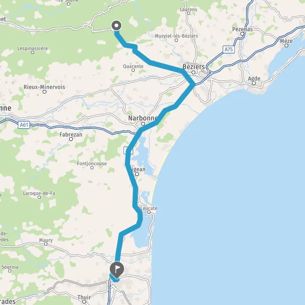 Prendre à droite et rejoindre A9 E15 E80. Continuer sur 74 kilomètres
