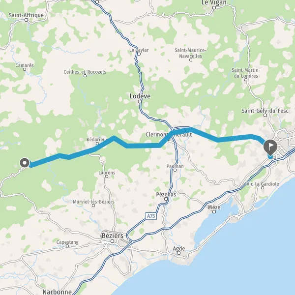 Au rond-point, prendre la 2ème sortie sur Avenue de Bédarieux et continuer sur 750 mètres