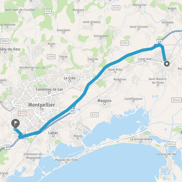 Au rond-point, prendre la 2ème sortie sur N113 (Avenue de Montpellier) et continuer sur 1,7 kilomètre