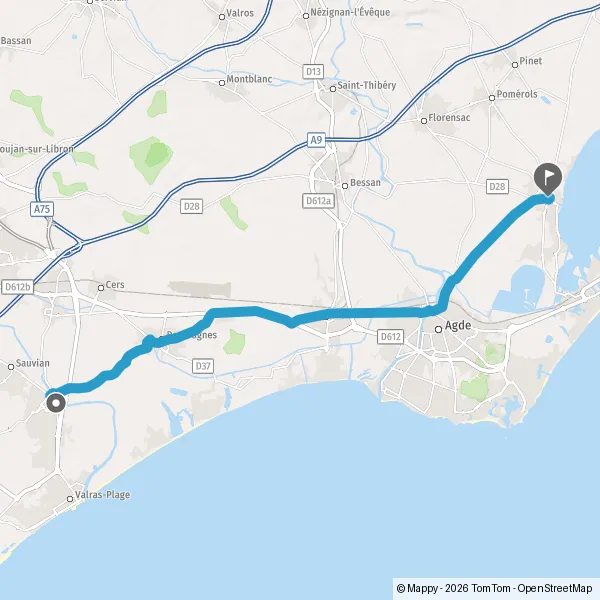 Au rond-point, prendre la 2ème sortie sur D912 (Avenue d'Agde) et continuer sur 3,7 kilomètres