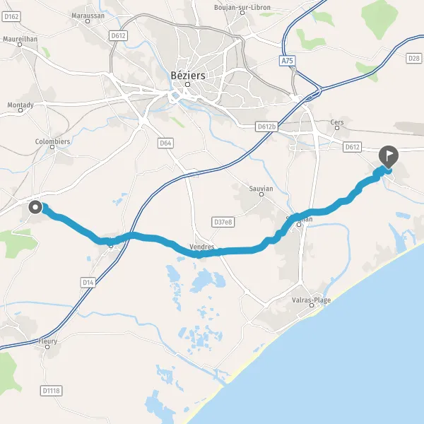 Tourner à gauche sur D37 (Avenue de Lespignan) et continuer sur 3 kilomètres