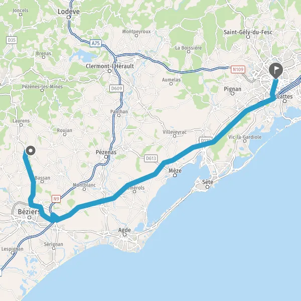 A75A9MONTPELLIERNARBONNESÈTEBÉZIERS-LA DEVÈZEP.A.E. du CapiscolP.A.E. la Méridienne