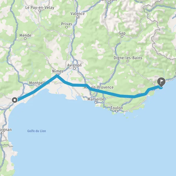 Prendre à droite et rejoindre A9. Continuer sur 105 kilomètres