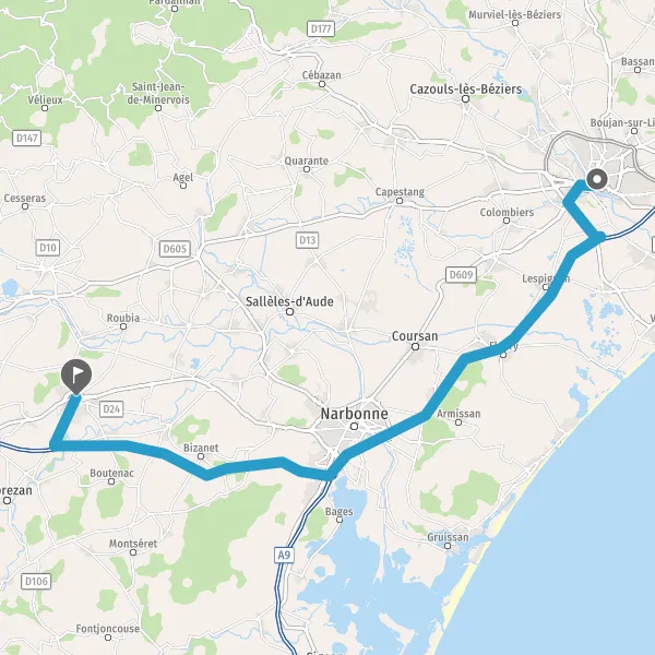 Au rond-point, prendre la 2ème sortie sur D609 (Route de Narbonne) et continuer sur 1,2 kilomètre