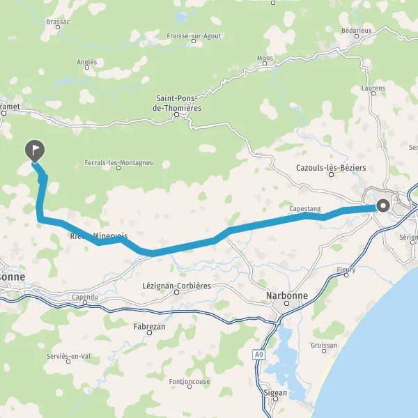 Au rond-point, prendre la 1ère sortie sur D11 (Route de Capestang) et continuer sur 3,8 kilomètres