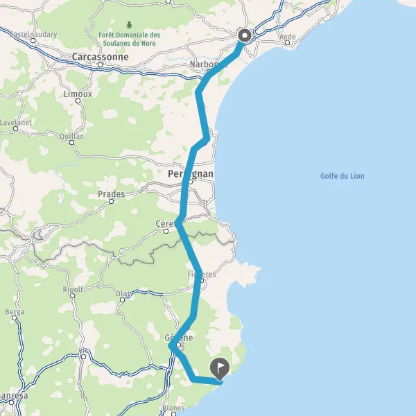 Prendre à droite et rejoindre A9 E15 E80. Continuer sur 113 kilomètres